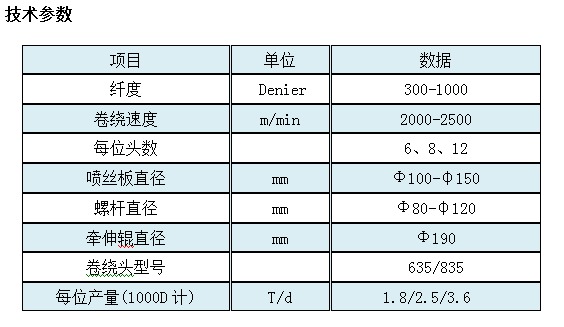 丙綸紡絲機主要特點 1.螺桿為加長型,變頻及壓力調(diào)節(jié)儀器為進口品牌。 2.采用了新型高效節(jié)能型紡絲箱體,比普通紡絲箱節(jié)能。 3.采用上裝式組件,方便紡絲工操作。 4.側(cè)吹風(fēng)系統(tǒng),風(fēng)速均勻穩(wěn)定,纖維條干好。 5.丙綸紡絲機采用感應(yīng)或高頻加熱牽伸輥輥,降低能耗。 6.多種組合的多級牽伸和熱定型方式可滿足丙綸牽絲不同性能的要求。 7.丙綸紡絲機采用全自動卷繞頭,切換成功率高、廢絲率低、成形良好。 8.溫控儀表、變頻器為進口品牌。