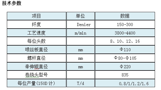 滌綸FDY紡絲機(滌綸FDY民用絲紡牽聯(lián)合機)介紹及主要用途: 滌綸FDY紡絲機:設(shè)備主要用于生產(chǎn)滌綸FDY全牽伸絲,該絲主要用于服裝、床上用品、裝飾用品、產(chǎn)業(yè)用的土工布、過濾布等。